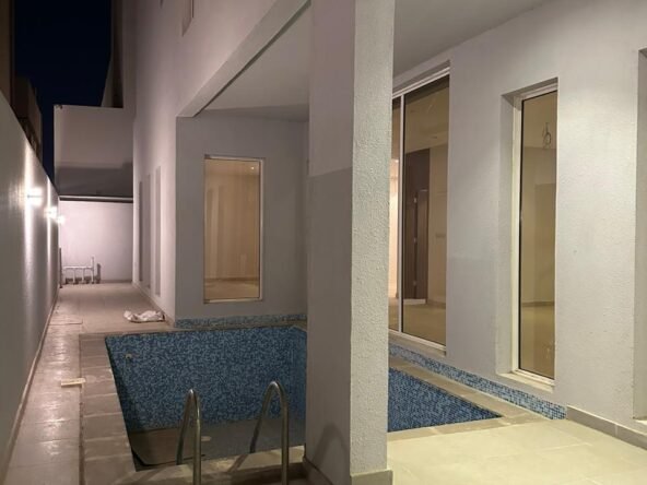 الفيلا عباره عن دورين وملحلق ومسبح وغرفة سائق