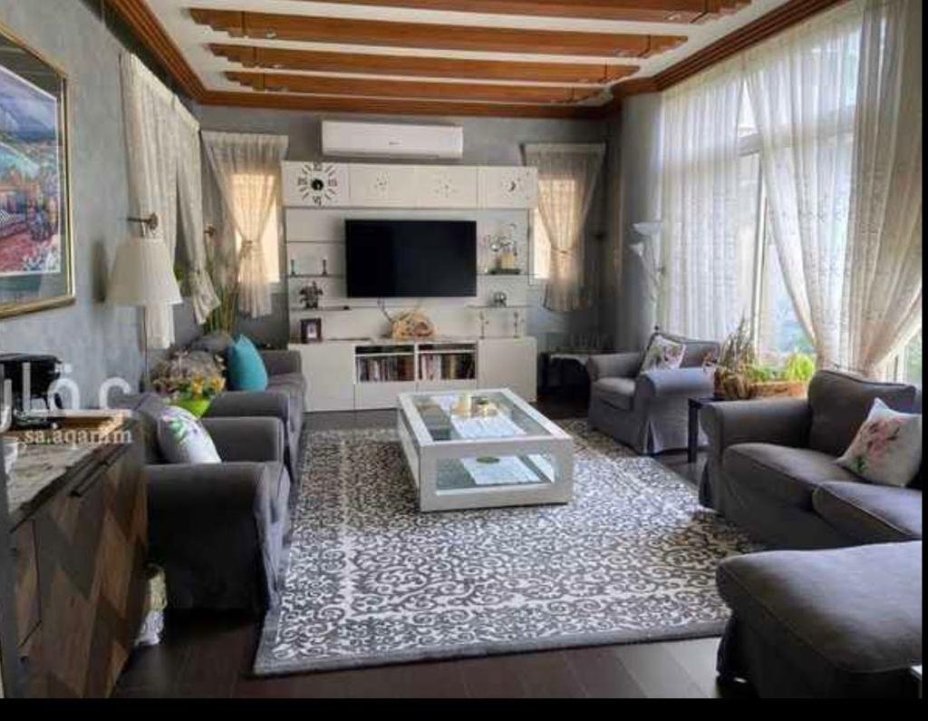 الدور الارضي فيها مجلسين وغرفة طعام وصالتين ومطبخ